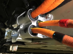 - Cut off the HV charger cable locking tabs from the cables.
