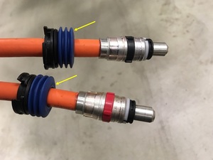 - Remove the HV rapid grommet from the HV rapid mate and slide it off the cables.