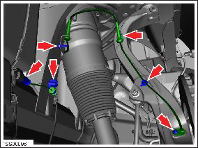 - Remove the screws (x3) that secure the wheel speed sensor harness bracket and wheel speed sensor (torque 8 Nm).