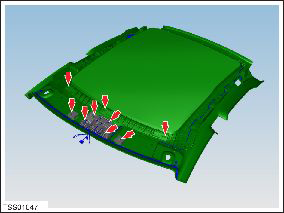 Carefully release the clips (x4) that secure the headliner center trim to the