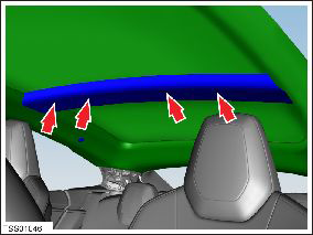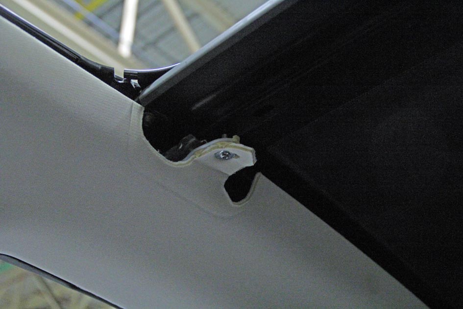- Remove the screws (x2) that secure the headliner to the roof frame or the metal bar, as applicable.