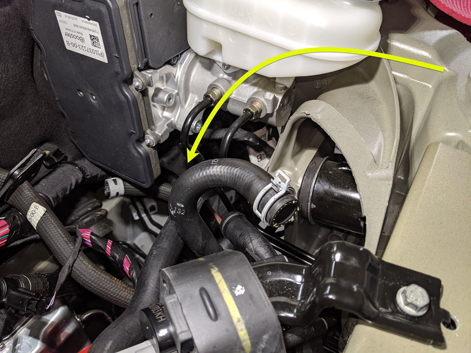 - Release the clips (x2) that attach the coolant hose to the body stud.