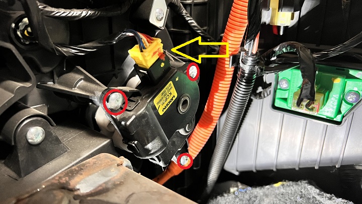 Remove the screws (x3) that attach the front passenger temperature actuator to the HVAC assembly, and then remove the actuator from the vehicle.