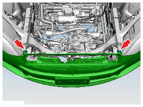 - On each side of the vehicle, remove the fasteners (x2) that attach the fascia bracket to the front end carrier (torque 4 Nm).