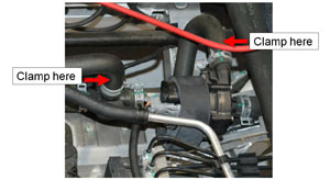 - Clamp the inlet and outlet hoses.