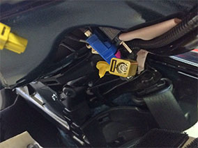 - Remove the electrical tape and cable ties as needed to access the yellow satellite antenna connector in the electrical harness at the LH upper C-pillar.