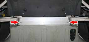 - Remove and discard the bolts (x2) that secure the bash plate extrusion to the front subframe (16 Nm).