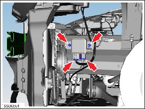 - Remove the nuts (x2) that secure the LH fan control module to the chassis rail (torque 8 Nm).