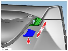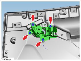 - Remove screws (x3) and nut (x1) securing interior door handle to trim pad (torque 3 Nm).