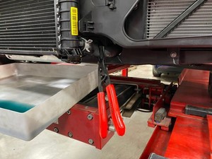- Release the RH coolant hose from the radiator. Move the coolant drain container and repeat this step for the LH coolant hose.