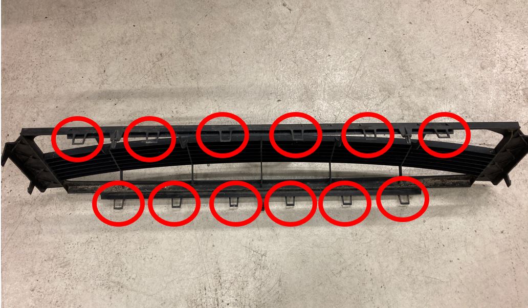 - Position the front ducting to the front end ducting assembly, and then secure the tabs (x16) that attach the ducting to the assembly.