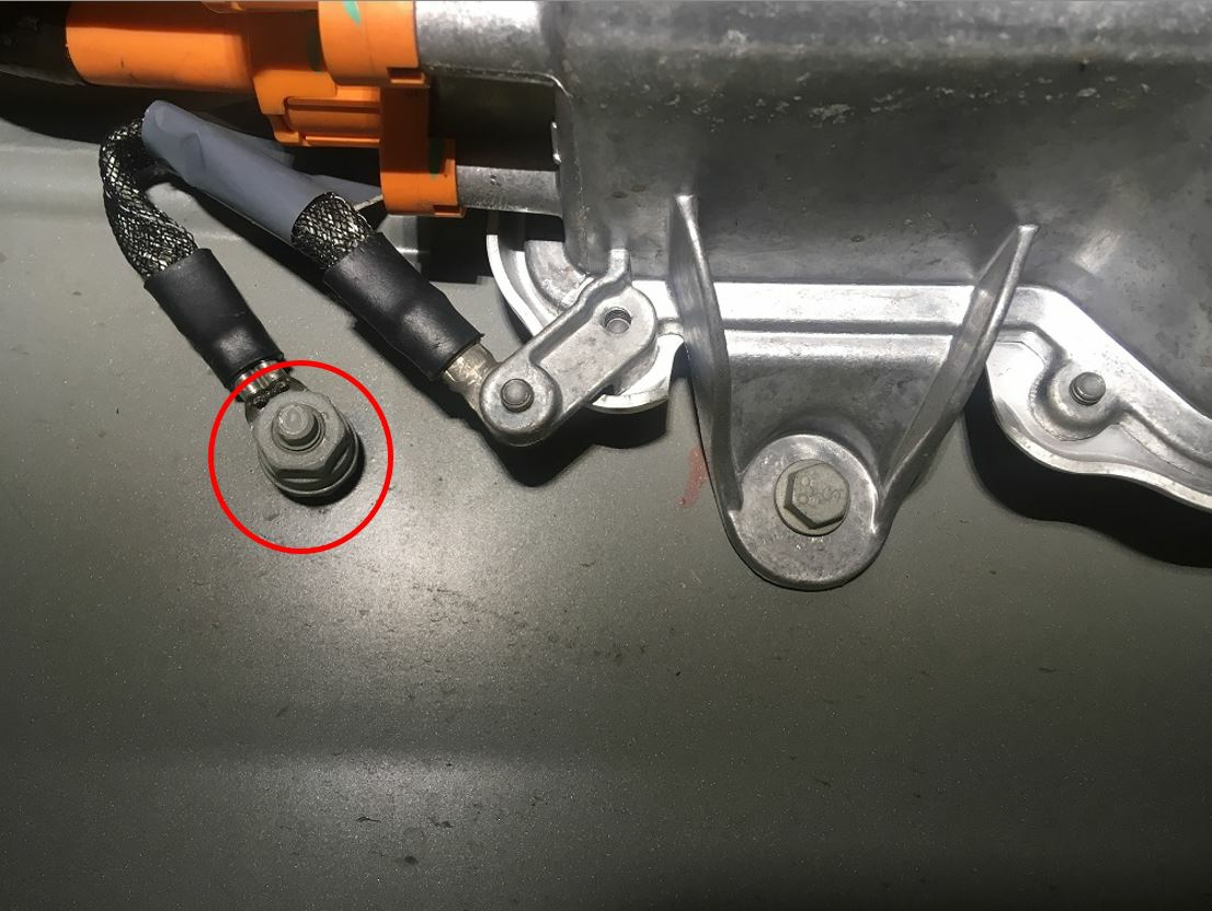 - Remove the nut on the RH side of the forward junction box (torque 7 Nm).