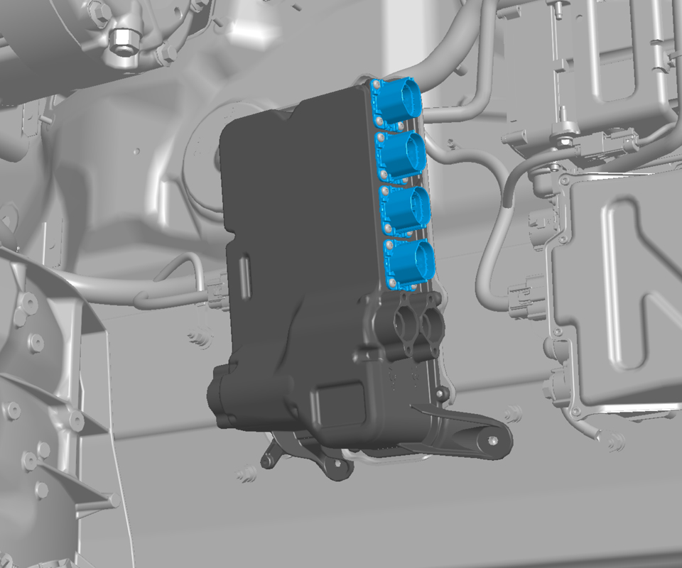 - On the RH side of the forward junction box, release the fasteners (x4) that secure the HV cables (torque 7 Nm).