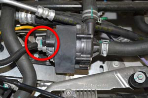 - Disconnect the harness from the coolant pump.