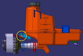 - Release the 2 fasteners that secure the coolant reservoir bracket.