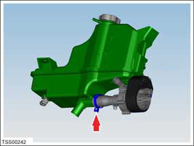 - Release the 1 nut that secures the coolant reservoir upper bracket (torque 5 Nm).