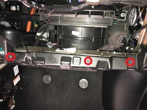 Note2x screws, PH2, 1 Nm, 1x connector, Pull passenger floor air duct away from HVAC assembly to release