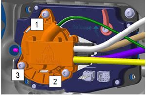 - Remove the 3 bolts that secure the cable connector to the charge port in the order shown (torque 4 Nm). Remove the cable connector.