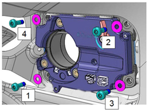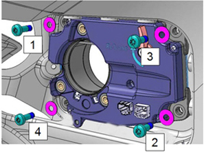 - Remove the bolts in the order shown (torque 3 Nm). Remove the charge port.