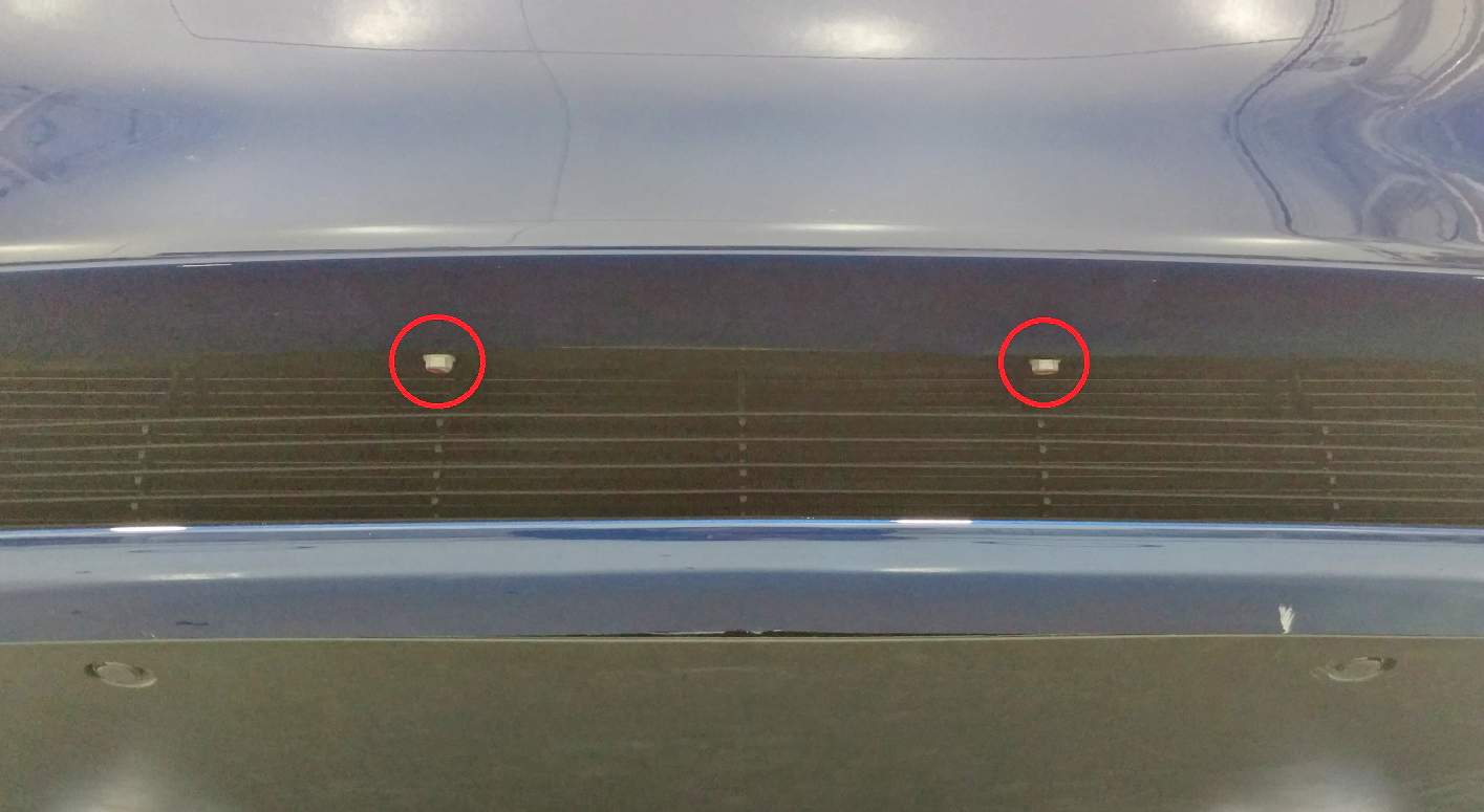 - Remove the bolts (x2) that secure the bottom of the license plate bracket to the J-nuts in the front fascia.