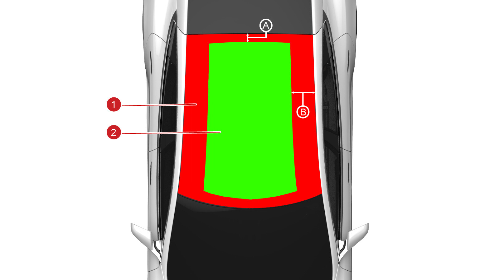 Repairs allowed in area 1: None; if the roof glass is damaged in this area, it must be replaced. |