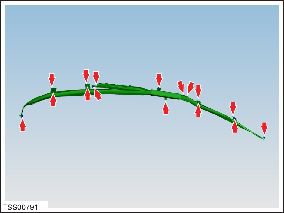 - Remove the screws (x9) that secure the curtain airbag to the body (torque 10 Nm).