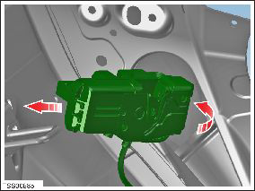 - From inside the vehicle, disconnect the latch wiring, release the latch from the C-Pillar, then remove it from the opening.