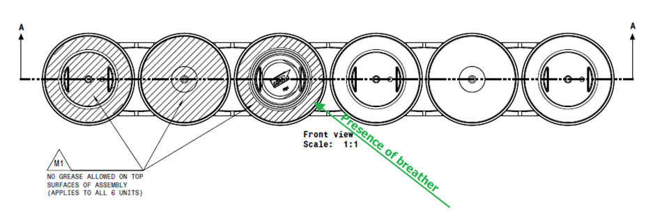 • If the HV battery has a breather on the original bump cover (1055911-00-D) and/or several breathers installed along the side ski in the umbrella valve ganged assemblies, you can use the original or the newer umbrella valves.