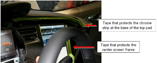 Cover the chrome strips at the base of the top pad and around the center screen with tape.