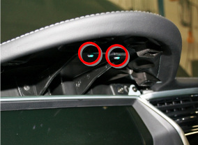 - Remove the 2 screws beneath the lower binnacle cover that secure the IP top pad to the IP carrier
