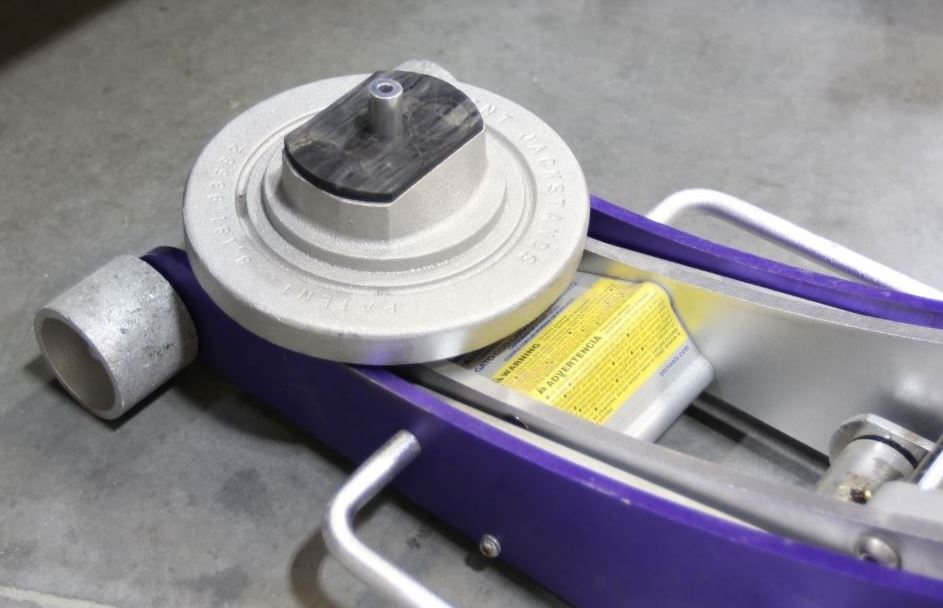 - Slowly lower the floor jack, making sure the jack stand is aligned with the jack stand adapter.