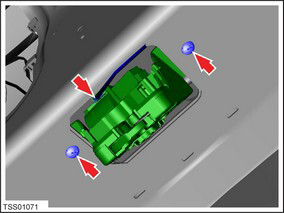 - Remove screws (x2) securing liftgate latch assembly (torque 10 Nm).