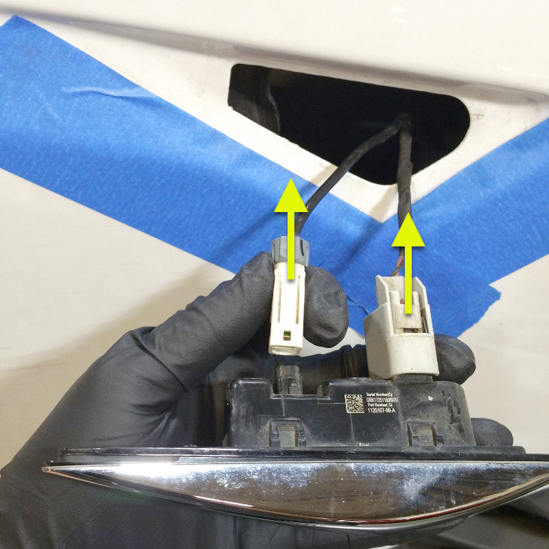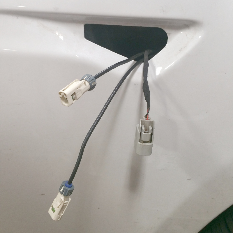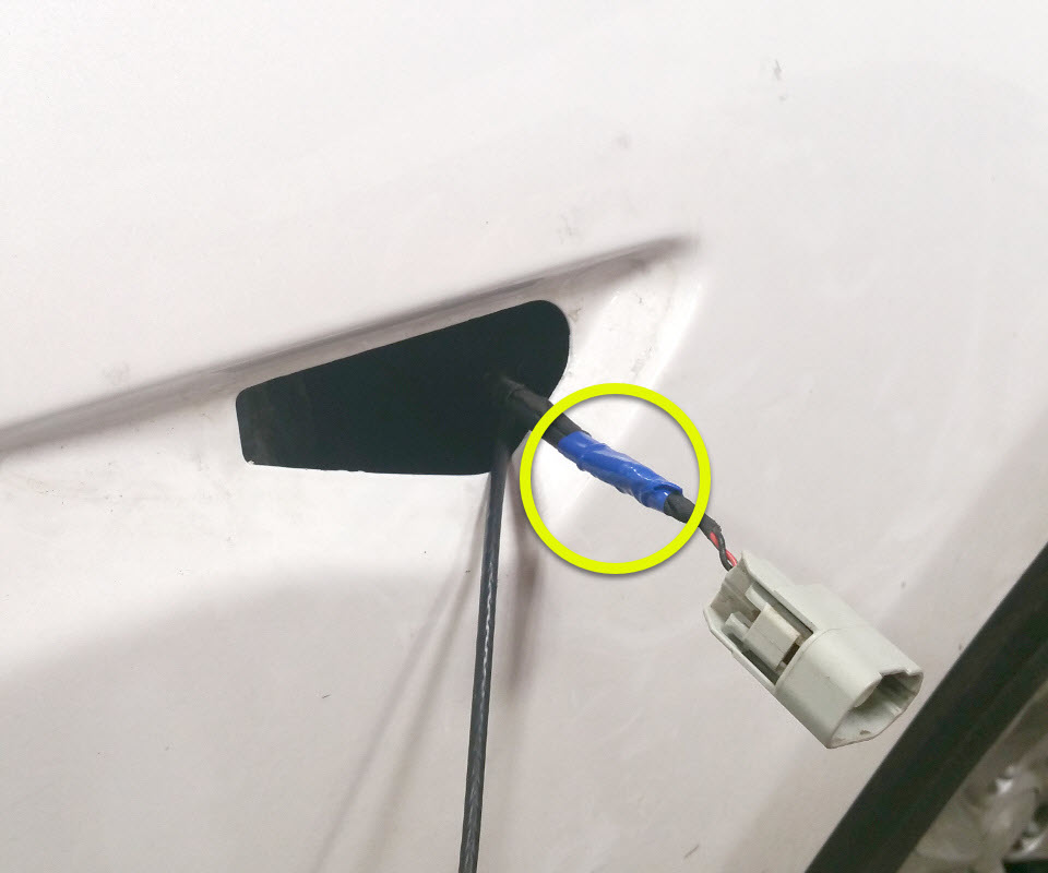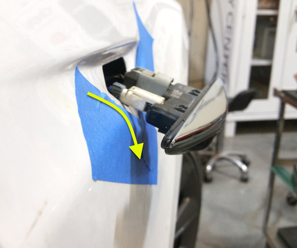 - Remove the connector from the old coax cable, and attach the old coax cable to the RH repeater light electrical harness with tape.