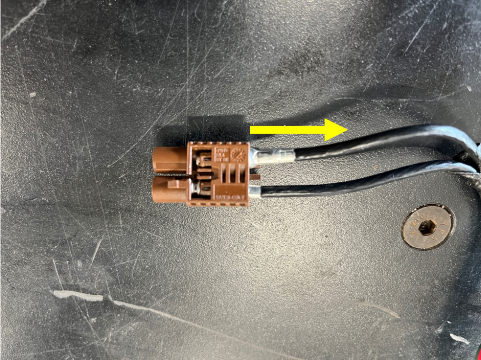 - Use the pin drag kit to carefully lift the locking tab of cavity 1 on the dual connector, and at the same time, pull the RH repeater coax cable from the dual connector.