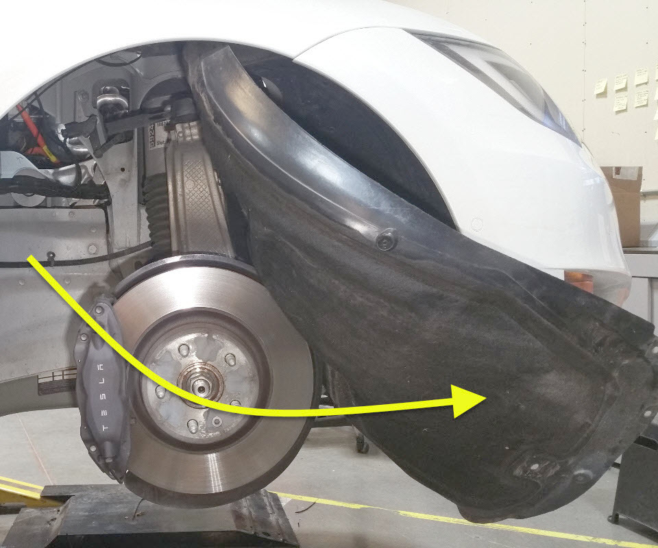- Fold the liner forward, and then place the liner between the brake rotor and fascia.