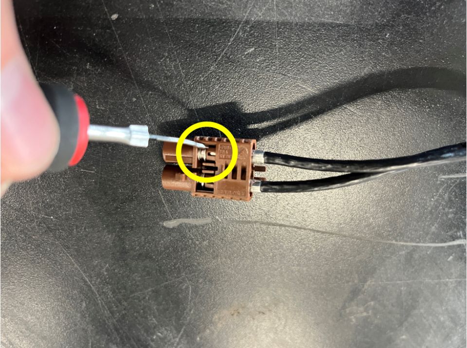 - Use the pin drag kit to carefully lift and remove the purple locking insert out of the dual connector.