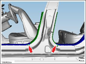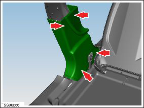 - Remove the screws (x2) that secure the lower 'B' post lower trim to the body (torque 2 Nm).
