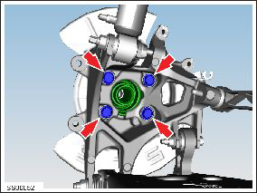 Remove the bolts (x4) that secure the hub to the knuckle (torque 90 Nm).