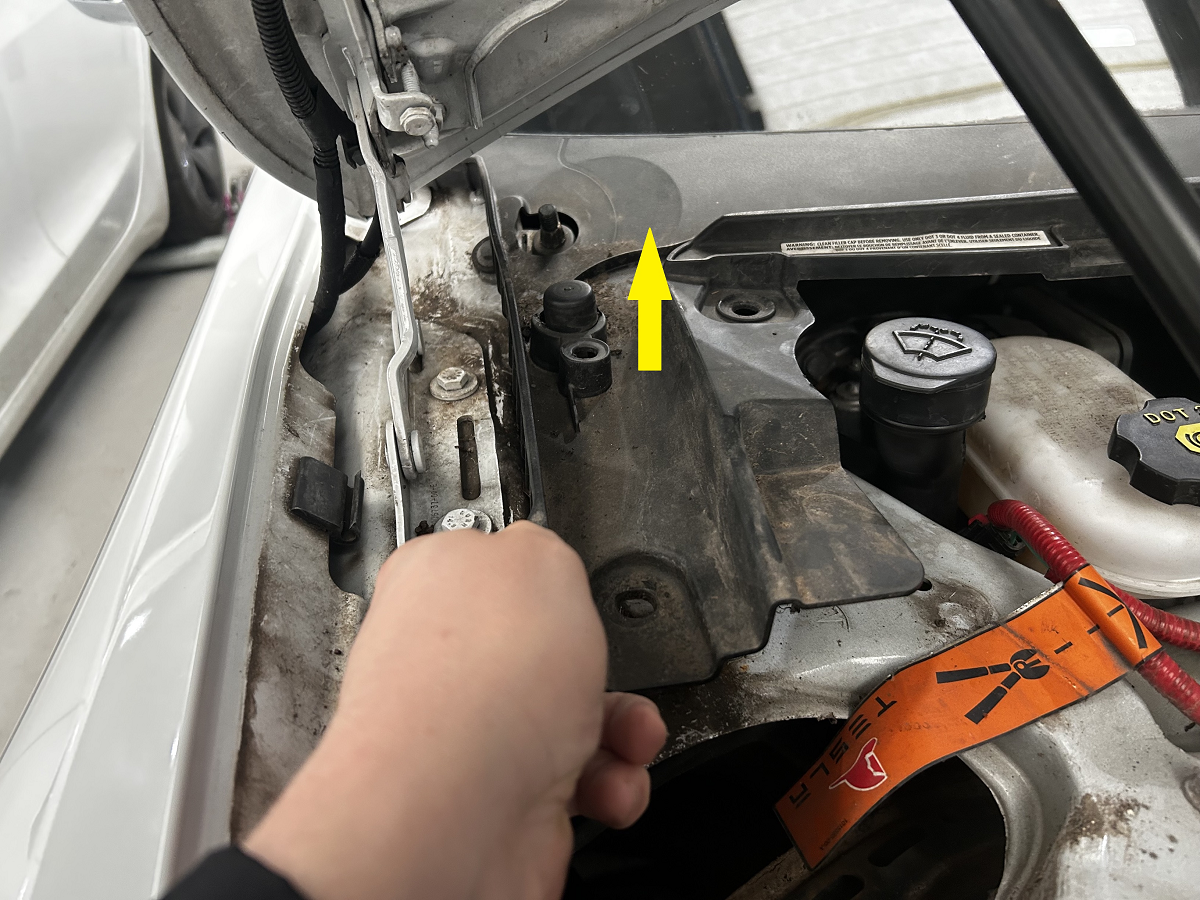 - Remove the LH and RH shock tower covers.