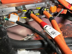 Note3x bolts, 10mm, 6 Nm, Ensure that the cable is not tugged or pulled unnecessarily which can yield the C-clamp strain relief and cause a thermal ignition event at the GB charge port area while attempting to charge.