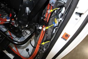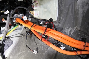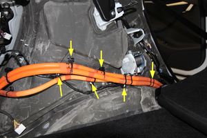 Feed the Charge Port HV Harness in towards the front of the vehicle from the rear.