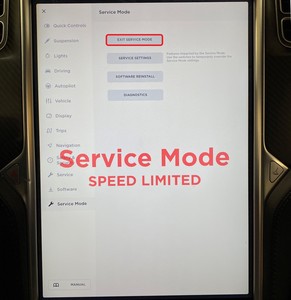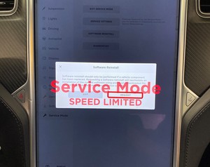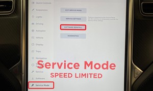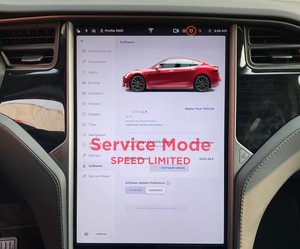NotePre-FW 2020.48.25 hold Tesla "T" icon at top of center display for four seconds and then type "service" into Access Code box, Post-FW 2020.48.25 The Tesla T has been removed from the top bar of the UI, Press and hold for 2sec the vehicle's badge icon in Controls > Software for Access Code box.