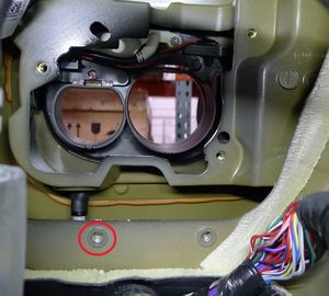 Remove screw securing latch release cables at center of charge port assembly housing and move cables aside.
