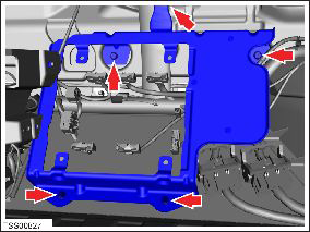 - Remove the 4 bolts and 1 nut that secure the sunroof controller mounting bracket to the body (torque 8 Nm).