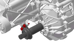 - Release the bolts (x2) that secure the jackshaft to the drive unit (torque 30 Nm).