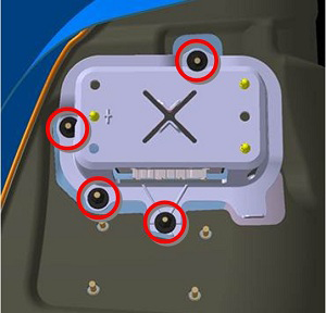 - Remove the nuts (x4) that secure the park assist module and bracket to the body (torque 3 Nm).