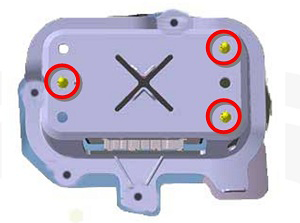 - Remove the park assist module from the bracket by releasing the push rivets (x3).