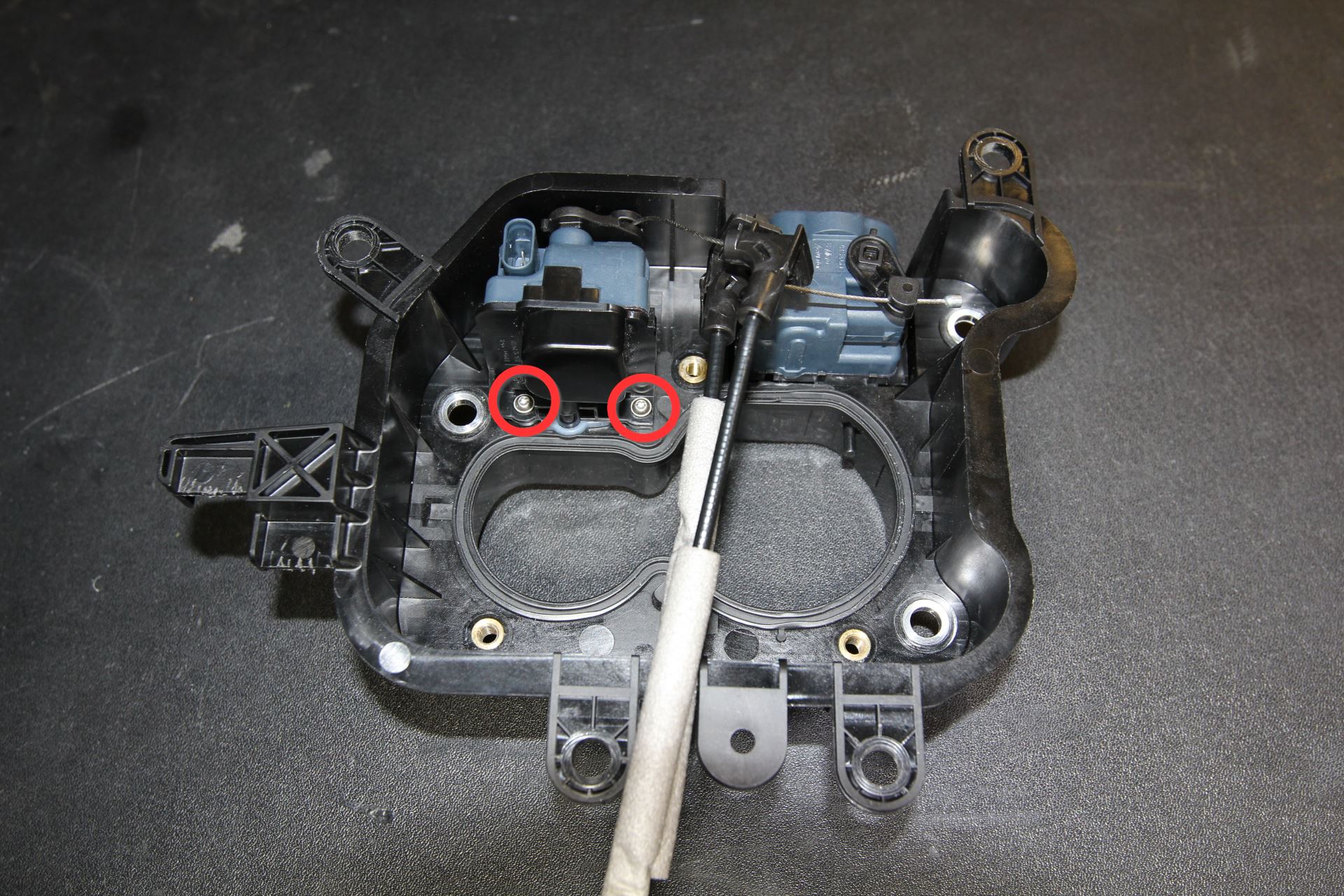 - Secure DC latch actuator to dual charge port assembly housing.