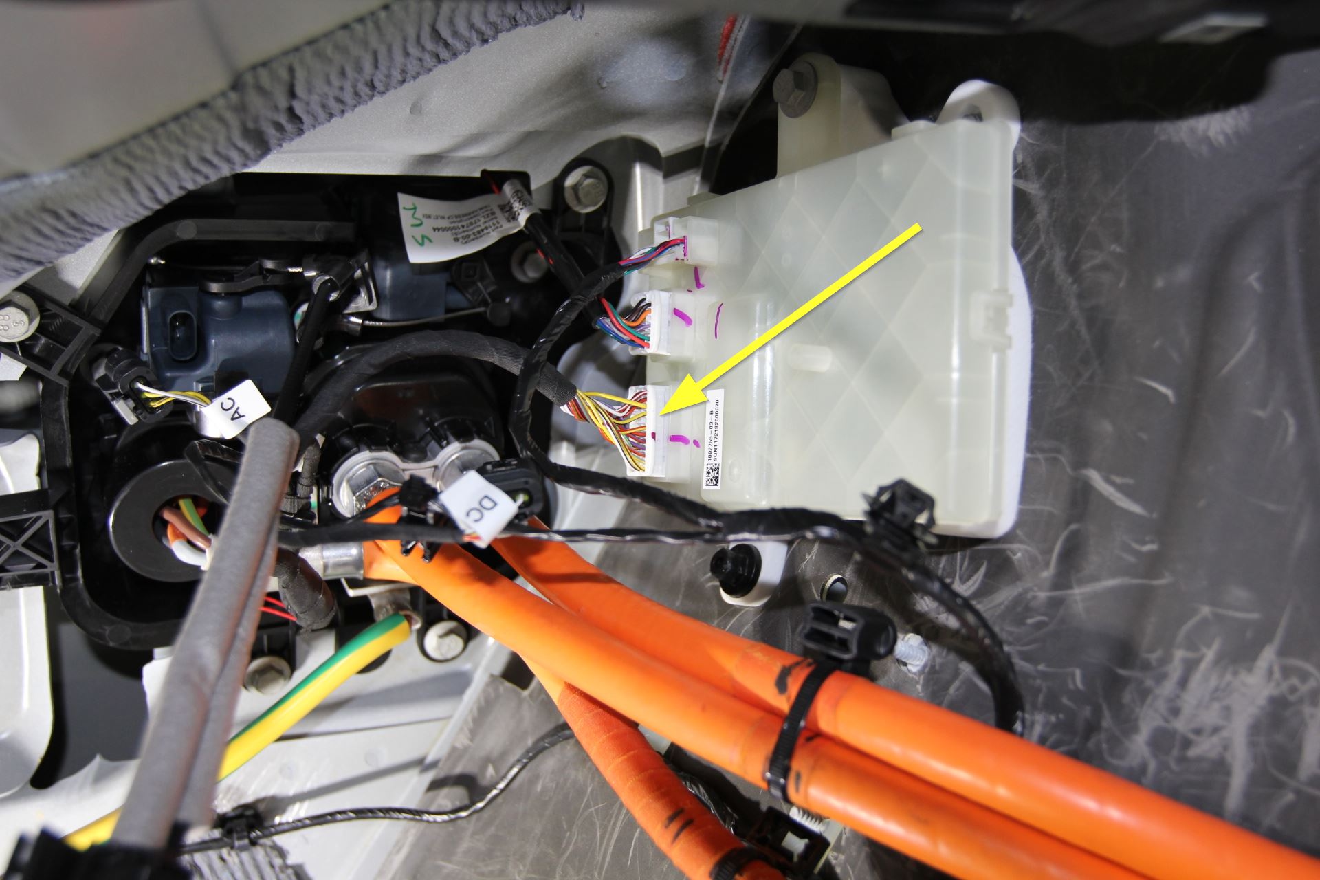 - Connect logic connector (X1) to charge port ECU.