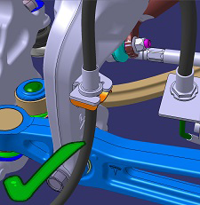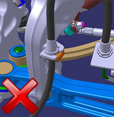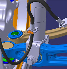 - Note the orientation of the clip that attaches the brake hose to the air spring module. Release the clip.